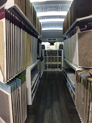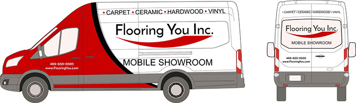 VDG provided a new logo design and custom vehicle interior concept for Flooring You Inc., the sister company of Motor City Carpet and Flooring. The concept involved fitting a large portion of a flooring showroom into the back of a Ford Transit to create a mobile showroom. VDG worked in concert with Opus Mach of Warren, MI to finalize the design and fabrication of the mobile showroom.