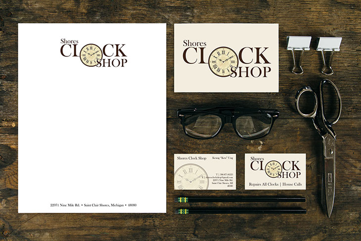 Shores Clock Shop is a new clock repair shop in Saint Clair Shores, MI. VDG developed a new logo and set of print media designs for this startup to help them make their mark on the community. The concept was to create a warm, inviting, and clear logo and graphic layout for the business.
