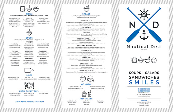 Nautical Deli is a mainstay on the eastside of Macomb County and after years of faithfully serving the community top notch lunch fare it was time to refresh the image. Opting to go with a modern and minimalist design concept that still connected with the restaurant's nautical ties VDG produced a brand manual and set of designs that should stand the test of time. The branding package included the logo and color scheme, menus, print media, digital media, apparel, and more. VDG is proud to continue this brand rollout with Nautical Deli to update signage and the interior of their restaurant.